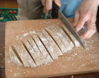 失敗かなぁとは思いつつ、包丁で短冊のように切り、トースターで数分焼いてみます。