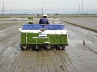 私の場合古い田植え機を改造して乗ったまま行いす。