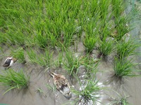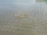 水田にカモを放鳥して水田の虫や草を食べてもらい、