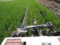 一回に2本を掘るので二往復して八本にします、歩かないので楽です歩行型ですと歩くわけですが、田んぼの泥が少し固くなっていて歩きづらく疲れます
