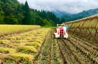 美味しい米作りには適期の刈り取りが大切です。
