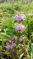 畦道の草刈り中に、あまり見かけない小さなピンク色の花を見つけました。