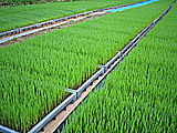 連休明けから数回に分けて「種まき」を行っています。品種ごとに時期をずらして行います。数百枚並ぶ苗床は、芽が伸びてきて、美しい緑一色となってまいりました。