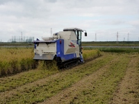 | 有機栽培米の稲刈り |