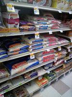 お米を積極的に扱っている日系高級スーパーの米売り場です。主に日本で流通している短粒種(コシヒカリ、あきたこまちなど)とアメリカで主流の中粒種(タイ米などの長粒種と短粒種の間に位置するお米)が置いてありました。短粒種は精米1kg当たり290円〜350円位、中粒種は精米1kg当たり175円〜230円位です。短粒種は日本の安めのお米と同等位の値段ですが、中粒種はやっぱり安い!健康を気にしてフライドポテトのような脂っぽいものを避けたいというお客さんがお米を食べるそうです。中粒種を2kgほど買ってきましたが、まだ試してません…。どのタイミングで食べようかな、と。