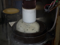 搗いた餅を取り出すところです。