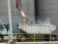 米サイロからトレーラーに移して精米工場へ