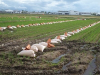 暗渠をしますと排水作業が早くなり、稲刈り作業が楽になります。