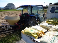 ミネラル資材の散布です。