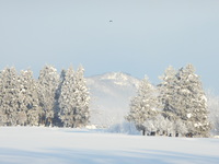 氷点下10℃まで下がったので、雪が杉の木に凍っています。