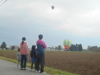 今年で27回目を迎える秋田スカイフェスタから約20km離れた私どもの所に熱気球が10個ほど飛んできてくれました。