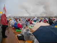 夕方、1時間余り小雨が降りましたが、約15万人の桟敷席はほぼ満杯でカッパを着ながらの観賞となりました。