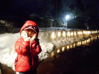 万願寺の冬の行事「天筆」に合わせ、孫たちがミニかまくらを作りました。