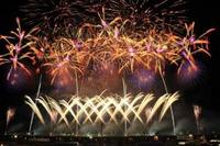 大会テーマを「行雲流水 日々 新 その先へ」として全国から選ばれた28業者が約1万8千発の花火を打ち揚げました。