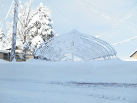 春の苗を作るパイプハウスも雪がくっつき、トンネルみたいになっています。