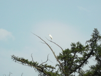 大形のシラサギが神社の大木の枝にとまり、羽根を休めていました。毎日の猛暑に、人も動物も喘ぎながら暮らしております。