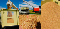 コンバインで刈り取った稲はすぐに脱穀され、コンバイン内部のグレンタンクに籾(モミ)が溜められます。