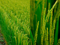 ふっくらと膨らんだ籾(モミ)がたくさんついています。