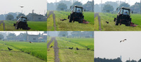 どこへ飛んでいくのかな〜と思ったら、草刈り中のトラクタの方へ...。
