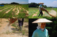 | 畑に肥料を撒く |