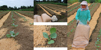節子ママが畝と畝の間の通路に、もみ殻を撒いていました。
