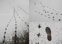 | 雪に残るキジの足跡 |