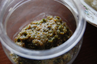 小川の土手で採れたフキノトウで、フキ味噌を作りました。