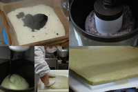 上からプレスし、型を取り外します。お餅が平らになりました。