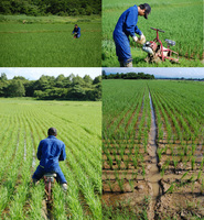有機栽培農法は、除草剤を一切使わないため、人力や機械の力で、雑草を除去します。