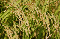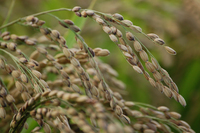 早稲の黒米「朝紫」の稲穂、ずっしりとしてきました。