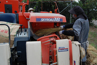 黒米は少ししか作らないので、大型のコンバインを持ち出すまでもありません。