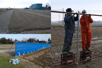 ライスステーション側の苗代の前にも、防風ネットを張りました。