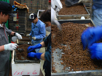 冷水に浸けて粗熱を取り、その後10度の冷水に浸けて10日間置き、水を吸わせます。