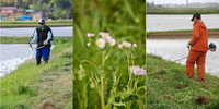 あぜ塗りとは、あぜの側面を固めて高くすること。
