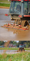 トラクタに取り付けたあぜ塗り機で、しっかりとしたあぜを作ります。