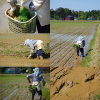 田植機での田植え(機械植え)のあとを追いかけて、手作業での苗植えもしています。