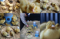 手のひらサイズのヒナ。餌箱に飛び込んでついばみます。