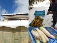 まずスコップで雪かきをして、雪の下から大根を掘り出してきました。