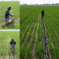 乗って使うのではなく、押して歩くタイプの水田溝切り機です。メーカーも異なります。