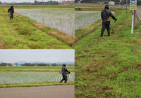 場所は五野井集落。道路と田んぼの境の雑草を刈っていました。