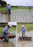 乗用式水田溝切り機「田面ライダー(でんめんらいだー)」に乗って、江たてをしました。