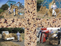 足踏み式の脱穀機での脱穀は大変手間なので、コンバインを使いました。