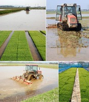発芽苗を運搬機で苗代まで運び、地道に手で苗箱を並べました。