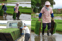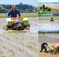 田植えは、田植え機を使うほか、手作業での田植えも行ないます。