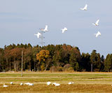 そろそろ帰ろうかなと踵を返し・・・ふと鳴き声がしたので振り向くと、白鳥が飛んでいる!