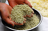 大量の塩が必要ですし、水の作業は大変なので、当社はライスグレーダーを使用しています。