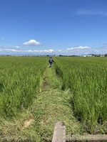 今年もジャンボタニシに苗が食べられて大変ですが、苗の生育は順調です。今は、田んぼに生える雑草を取り除いたり、水の管理など毎日、奮闘中です。