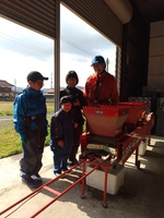 少しだけ、子供たちも田植え機に乗せてもらい、一緒に田植えを行いました。機械に乗るのはとても楽しそうです。