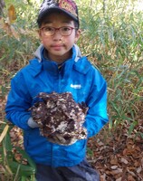 息子2人と笹が茂っている場所をかき分け、落ち葉の下を確認しながら進んでいくと、ハンペンのある場所を発見!!