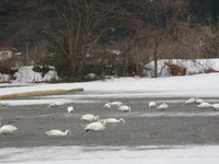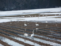 さしもの今年の大雪も解け始め、田んぼが現れるとさっそく白鳥が飛来する。今年は春先も寒く白鳥は北帰行も遅いのだろう。